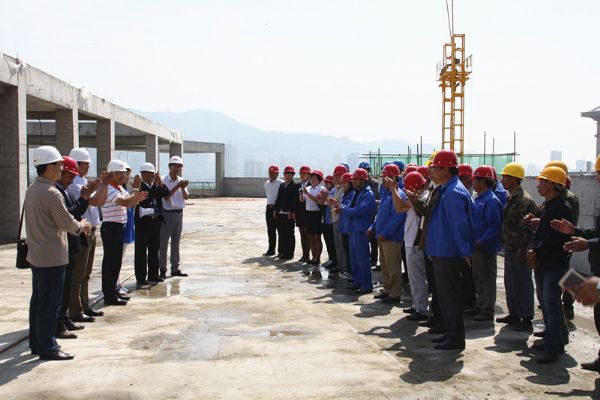 5月23日,在這樣一個(gè)晴空萬里,清風(fēng)拂面的日子里,甘肅萬華職業(yè)培訓(xùn)學(xué)校項(xiàng)目一期工程2#教學(xué)樓舉行了主體結(jié)構(gòu)的封頂儀式。甘肅萬華實(shí)業(yè)集團(tuán)董事長(zhǎng)牛新民蒞臨現(xiàn)場(chǎng),集團(tuán)開發(fā)部總經(jīng)理杜牧拉、副總經(jīng)理李云喜及開發(fā)部、監(jiān)理部、項(xiàng)目部全體人員共同參加了封頂儀式。