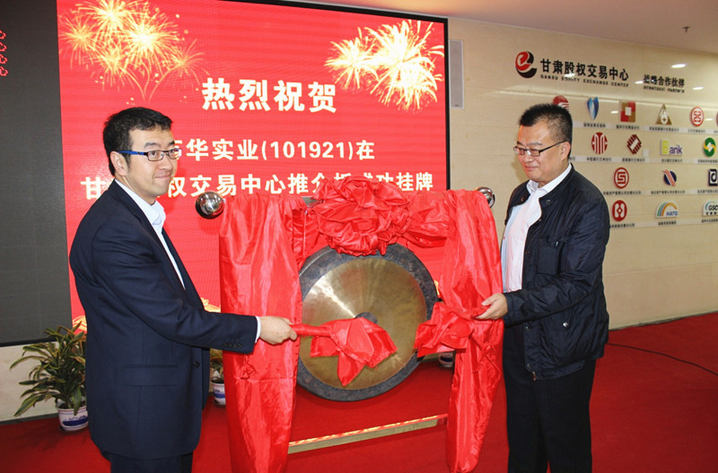 5月28日上午10時,蘭州市政府金融辦與甘肅股權交易中心戰(zhàn)略合作簽約暨蘭州企業(yè)掛牌儀式在甘肅股權交易中心正式舉行。萬華金慧總經理施強代表甘肅萬華實業(yè)集團有限公司與蘭州銀行公司業(yè)務部總經理盛柏涵在儀式上共同鳴鑼,萬華實業(yè)集團在甘肅股權交易中心推介板成功掛牌,掛牌名稱為:萬華實業(yè),掛牌代碼為:101921。
