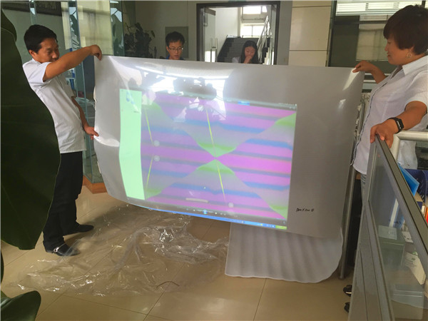 盡管沒有專門的調(diào)試場所,公司員工在集團(tuán)二樓的過道、走廊架起了投影機(jī),拉起了調(diào)光膜,對其進(jìn)行一遍又一遍的調(diào)試。因?yàn)檎{(diào)光膜是新型產(chǎn)品,所以在沒有實(shí)驗(yàn)以前不知道會(huì)有什么樣的效果,這就需要工作人員對其進(jìn)行反復(fù)的實(shí)驗(yàn),確保投影畫面達(dá)到最清晰的效果,給客戶一個(gè)滿意的答復(fù)。