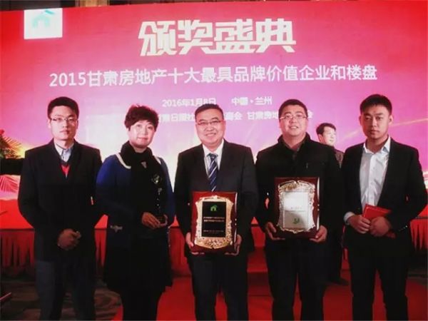 2016年1月8日,甘肅房地產(chǎn)業(yè)界年度盛事——“2015甘肅房地產(chǎn)十大最具品牌價(jià)值企業(yè)、樓盤(pán)”評(píng)選活動(dòng)頒獎(jiǎng)典禮在蘭州萬(wàn)達(dá)文華酒店成功舉辦。敦煌千年古城開(kāi)發(fā)有限公司同時(shí)攬得“2015甘肅房地產(chǎn)十大最具品牌價(jià)值企業(yè)”和“2015甘肅房地產(chǎn)十大最具品牌價(jià)值樓盤(pán)”兩項(xiàng)大獎(jiǎng)。