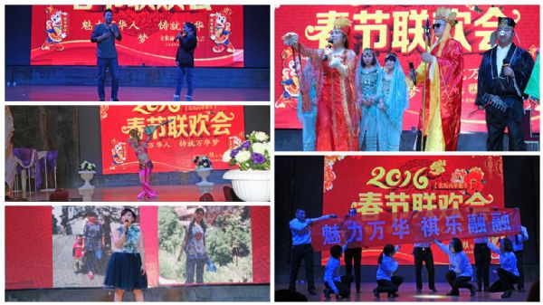 晚會(huì)的開場(chǎng)節(jié)目“草裙舞”由2015年經(jīng)常合作的廣告公司的朋友們帶來,她們青春熱情,在歡快的音樂中熱場(chǎng),將大家從寒冷的高原帶到了溫暖的海濱。獵豹銷售部的李秋雁、祁吉光和王亞斌合唱的歌曲“愛”讓大家感受到了有愛的生活多么美好。敦煌公司同事郭麗專業(yè)的舞蹈“飛天”,詮釋了敦煌文化藝術(shù)的代表形象,飄逸、端莊。售后服務(wù)部員工的“奔跑吧,兄弟”與當(dāng)下流行的綜藝節(jié)目相契合,體現(xiàn)了售后員工積極進(jìn)取,團(tuán)結(jié)協(xié)作的精神。傳祺銷售部的“廣播操”表演,歡快熱烈,不同風(fēng)格的數(shù)段音樂,或賣萌,或搞笑,或嚴(yán)肅,或可愛,在舞蹈結(jié)束時(shí),還打出“魅力萬華 祺樂融融”的橫幅,巧妙地將晚會(huì)與所經(jīng)營的主創(chuàng)品牌——傳祺汽車元素融為一體。行政人事部曹勵(lì)高亢嘹亮的歌曲《帶我到山頂》,送出了對(duì)父母的祝福。傳祺銷售部的小品“西游記歪轉(zhuǎn)”創(chuàng)意十足,通過杜撰唐僧師徒取經(jīng)路上擬放棄取經(jīng)任務(wù),如來佛祖不同意,便接受了女兒國國王贈(zèng)送的代步工具“傳祺GS4汽車”,從而,提前完成取經(jīng)任務(wù)的故事。詼諧的表演,豐富的服裝語言將晚會(huì)帶到高潮。財(cái)務(wù)部的舞蹈《小雞小雞》,憨態(tài)可掬,財(cái)務(wù)部“女將”的風(fēng)采又一次向大家完美展示。行政人事部冶海軍和李英的相聲《說說身邊事》,再一次將晚會(huì)推向歡樂的頂峰。最后的壓軸節(jié)目由售后服務(wù)部車間的員工帶來“瀟灑走一回”,舞蹈歡快,節(jié)奏感強(qiáng),小伙子們通過肢體語言,表現(xiàn)出盡管工作辛苦,但依然要瀟瀟灑灑生活的主題思想。