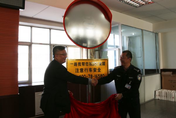 在一片祥和的氣氛中蘭州市交警支隊(duì)副支隊(duì)長(zhǎng)徐剛與萬(wàn)華金慧科技股份有限公司總經(jīng)理施強(qiáng)共同揭牌,祝愿本次公益活動(dòng)順利開(kāi)展。