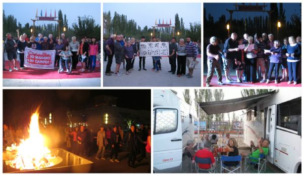 4月29日,一隊(duì)房車緩緩駛?cè)肭甓鼗?#8226;月牙泉小鎮(zhèn),車上的20余位意大利游客在小鎮(zhèn)安營(yíng)扎寨、品嘗美食,并與游客們一起狂歡。