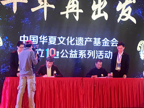 12月10日,中國(guó)華夏文化遺產(chǎn)基金會(huì)成立10周年公益系列活動(dòng)在深圳五洲賓館舉行;顒(dòng)現(xiàn)場(chǎng),中國(guó)華夏文化遺產(chǎn)基金會(huì)副理事長(zhǎng)高峰與敦煌千年古城開發(fā)有限公司董事長(zhǎng)牛新偉簽訂了“二十一世紀(jì)新敦煌”項(xiàng)目合作協(xié)議。