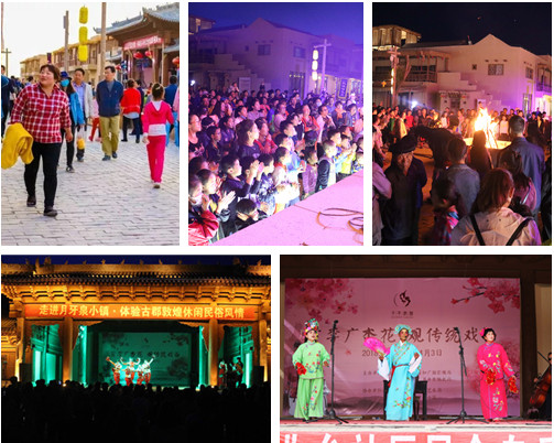 敦煌非遺文化——曲子戲,是月牙泉小鎮(zhèn)五一民俗活動(dòng)的“主打內(nèi)容”之一。敦煌市民徐先生說得好:“平時(shí)工作忙不過來,因?yàn)楣?jié)日有假期,才來這里游玩,看看戲曲節(jié)目真是一種放松!辫尮男,樂器齊奏,知道大戲開場啦,游客們紛紛呼喊同伴趕往景區(qū)中心街看戲。來自敦煌市北臺(tái)社區(qū)民眾自樂班的戲曲演員們帶著《打草鞋》《親上加親》《告斧頭》《月牙泉小鎮(zhèn)美名傳》等曲藝節(jié)目,為觀眾們獻(xiàn)上一場場精彩紛呈的戲曲大餐,為小鎮(zhèn)增添了濃濃的節(jié)日氣氛。