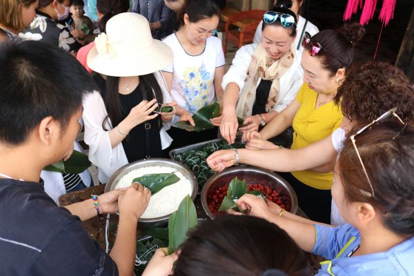 游客們對自己的勞動成果格外欣賞,和自己包好的粽子前合影留念。比賽包粽子的王女士開心地說:“今天是我第一次親手包粽子,雖然包的形狀不太好,但是讓我感受到了端午包粽子的樂趣和濃濃的節(jié)日氣氛!辈灰粫䞍海卵廊℃(zhèn)工作人員為游客們端來了剛煮好的熱氣騰騰的粽子,熱情地招呼大家品嘗。