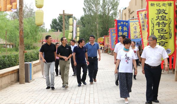 6月23日上午,在敦煌市委常委王愛國(guó)的陪同下,廣州市黃埔區(qū)委常委、統(tǒng)戰(zhàn)部部長(zhǎng)黃金持,統(tǒng)戰(zhàn)部副部長(zhǎng)、工商聯(lián)黨組書記王偉雄一行9人對(duì)千年敦煌項(xiàng)目進(jìn)行考察。