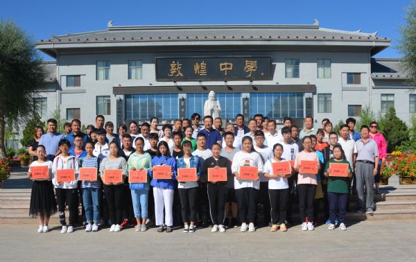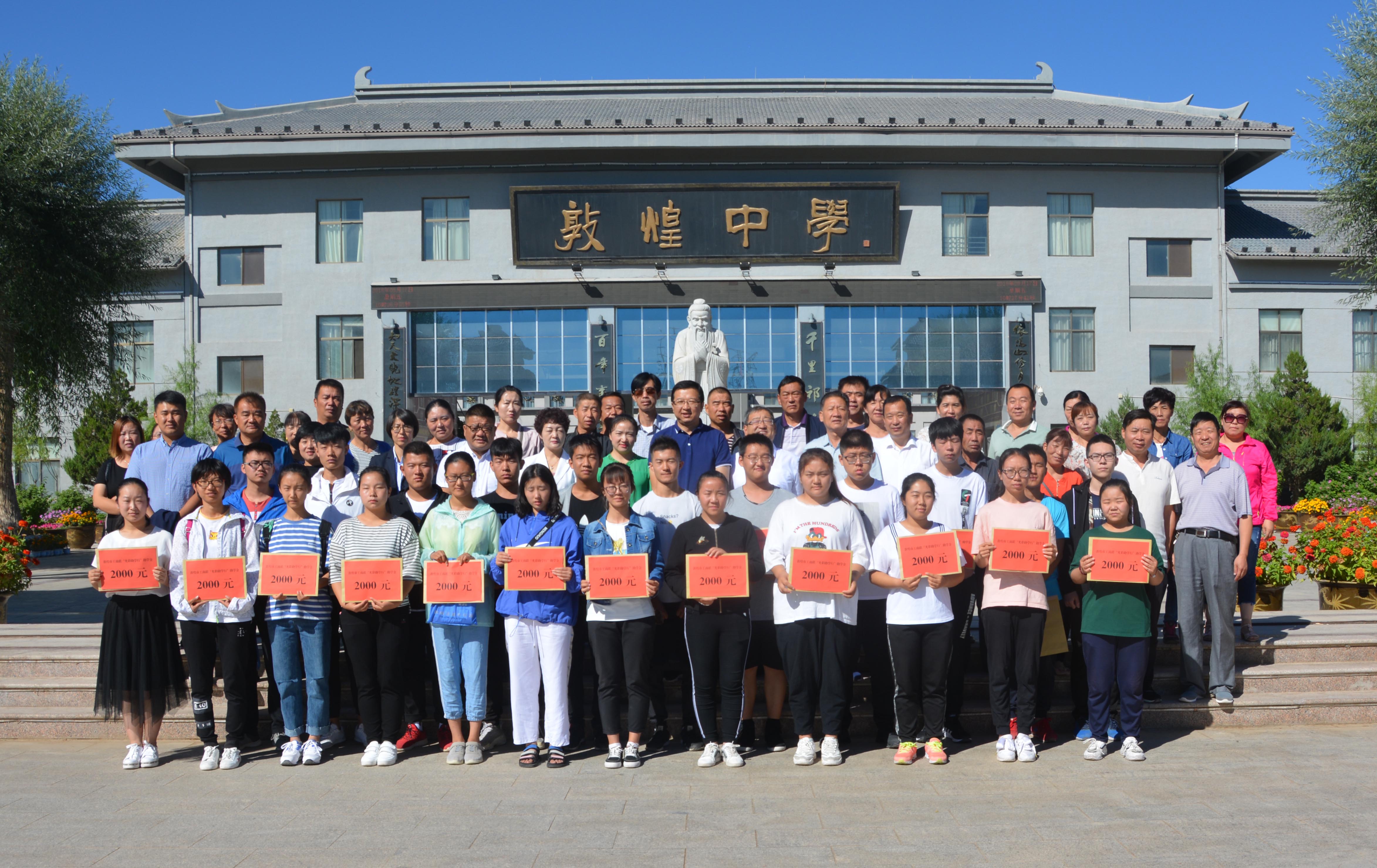 8月17日上午10時,敦煌市工商聯(lián)“光彩助學(xué)行”活動在敦煌中學(xué)舉行。敦煌千年古城文化發(fā)展有限公司副總經(jīng)理牛英霓、甘肅絲路敦煌山莊酒店有限責(zé)任公司總經(jīng)理杜亞東等9家企業(yè)和今年新考入大學(xué)的24名學(xué)生及家長參加了捐助活動。