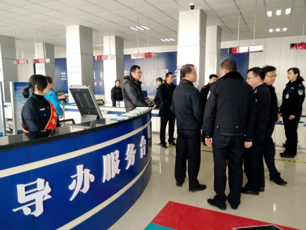 12月5日,甘肅省公安廳交通管理局副局長(zhǎng)鐘山、甘肅省公安廳交通管理局車(chē)管處處長(zhǎng)張建國(guó),蘭州市公安局交通警察支隊(duì)副支隊(duì)長(zhǎng)王元明,蘭州市公安局交警支隊(duì)車(chē)輛管理所教導(dǎo)李林、副所長(zhǎng)楊占軍、副所長(zhǎng)張彪一行蒞臨蘭州馬灘機(jī)動(dòng)車(chē)登記服務(wù)站視察指導(dǎo)工作。甘肅萬(wàn)華金盛汽車(chē)銷(xiāo)售服務(wù)有限公司執(zhí)行董事盛斌現(xiàn)場(chǎng)陪同。