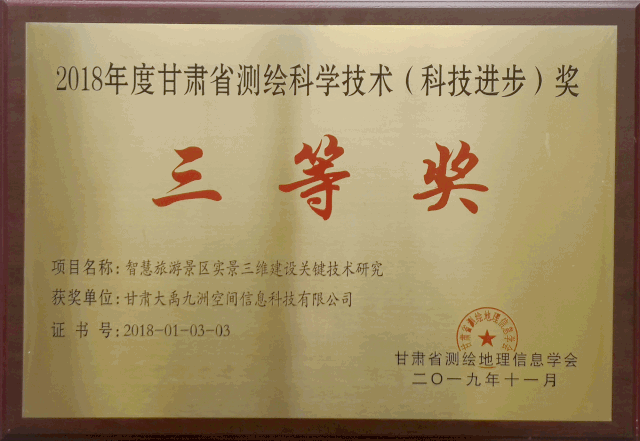 會(huì)上,甘肅省測(cè)繪地理信息學(xué)會(huì)理事長王有弢宣讀了甘肅省測(cè)繪地理信息學(xué)會(huì)“2018年度科學(xué)技術(shù)獎(jiǎng)”獎(jiǎng)勵(lì)的決定。由大禹九洲參評(píng)的“智慧旅游景區(qū)實(shí)景三維建設(shè)關(guān)鍵技術(shù)研究”項(xiàng)目榮獲2018年度甘肅省測(cè)繪科學(xué)技術(shù)(科技進(jìn)步)三等獎(jiǎng),“S28平?jīng)鍪徐`臺(tái)至華亭高速公路基礎(chǔ)控制測(cè)量與航測(cè)成圖測(cè)繪工程”項(xiàng)目榮獲2018年度甘肅省測(cè)繪科學(xué)技術(shù)(優(yōu)秀工程)金獎(jiǎng),“合水縣國土資源局不動(dòng)產(chǎn)登記平臺(tái)建設(shè)及數(shù)據(jù)整合采購項(xiàng)目”榮獲2018年度甘肅省測(cè)繪科學(xué)技術(shù)(優(yōu)秀工程)銅獎(jiǎng)。