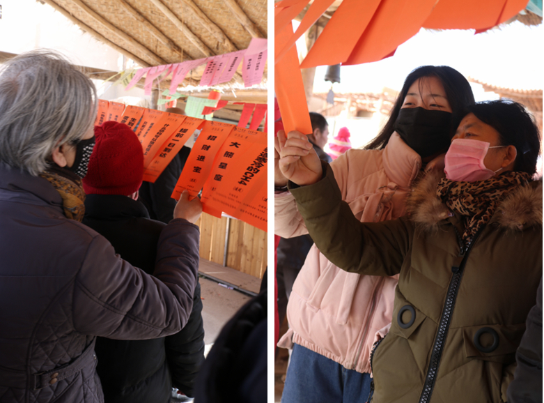 下午2時,月牙泉小鎮(zhèn)中心街人潮涌動,游客們一邊觀賞精彩絕倫的戲曲表演,一邊體驗元宵猜燈謎活動帶來的樂趣,大家爭先恐后將猜對的謎底告訴工作人員并兌獎,每個人臉上都洋溢著開心的笑容!敖衲昱隳棠桃黄鸬皆卵廊℃(zhèn)過元宵節(jié),她看戲,我猜燈謎贏獎品,仿佛置身于古代鬧元宵的場景當中,樂趣無限!币晃荒贻p人開心地說。