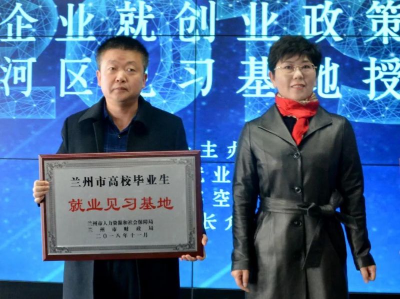 2018年,蘭州市共有24家單位被認定為第二批高校畢業(yè)生就業(yè)見習(xí)基地,作為七里河區(qū)兩家認定單位之一,甘肅大禹九洲測繪地理信息有限公司積極為高校畢業(yè)生提供就業(yè)見習(xí)平臺,切實幫助大學(xué)生積累工作經(jīng)驗,提升就業(yè)能力,真正實現(xiàn)校企人才供需對接。授牌儀式上,七里河區(qū)就業(yè)服務(wù)局局長李立英為大禹九洲副總經(jīng)理楊晉強授牌“蘭州市高校畢業(yè)生就業(yè)見習(xí)基地”。