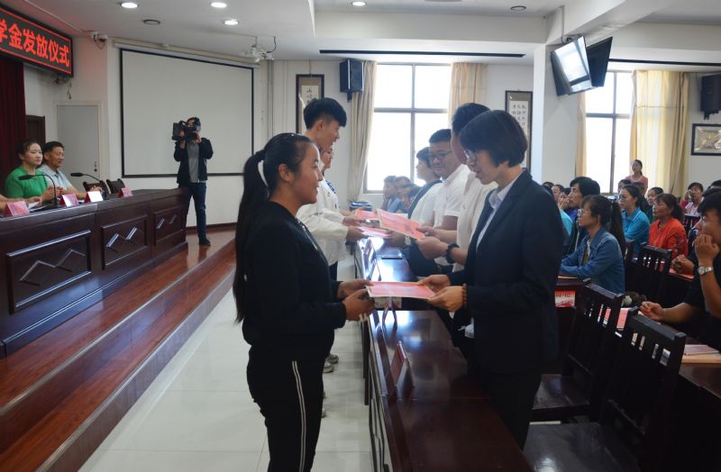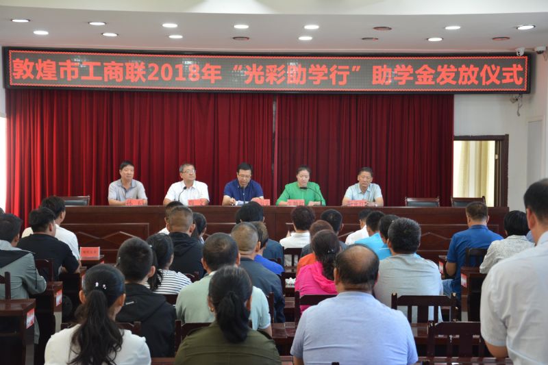 2018年8月17日,敦煌市工商聯(lián)“光彩助學(xué)行”活動在敦煌中學(xué)舉行。敦煌千年古城文化發(fā)展有限公司副總經(jīng)理牛英霓向受助大學(xué)生捐贈現(xiàn)金。