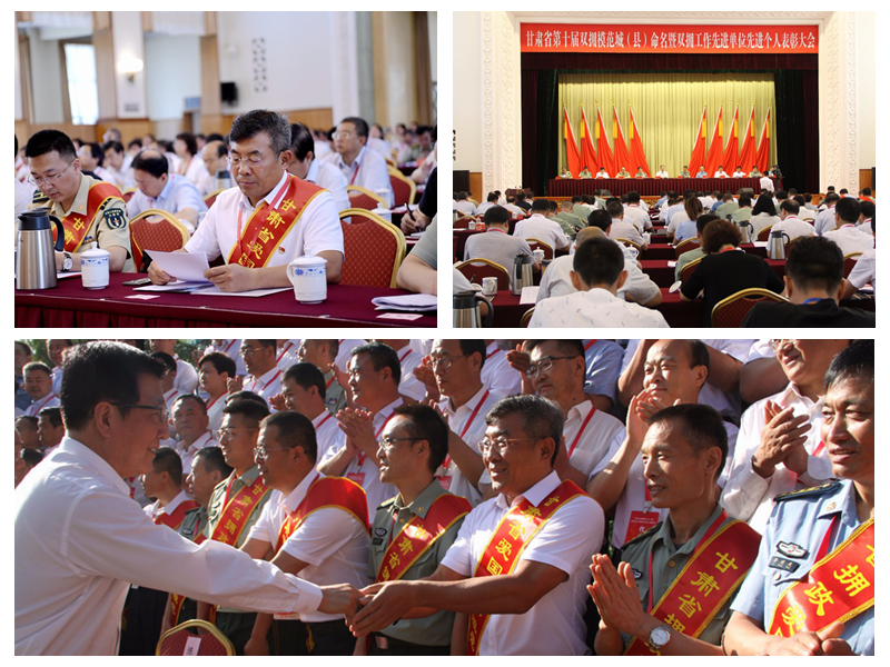 9時(shí)30分,寧臥莊賓館大禮堂內(nèi),當(dāng)雙擁模范披上鮮艷的紅綬帶時(shí),會(huì)場(chǎng)氣氛達(dá)到高潮。表彰大會(huì)在中華人民共和國(guó)國(guó)歌中拉開(kāi)帷幕。甘肅省副省長(zhǎng)、省雙擁工作領(lǐng)導(dǎo)小組副組長(zhǎng)余建主持會(huì)議,省軍區(qū)副政委、省雙擁工作領(lǐng)導(dǎo)小組副組長(zhǎng)倪永盛宣讀本次表彰的先進(jìn)個(gè)人和單位名單,“雙擁模范城”“雙擁模范縣”“雙擁模范”“雙擁工作先進(jìn)單位”“雙擁工作先進(jìn)個(gè)人”等先進(jìn)代表們依次上臺(tái)接受表彰。牛新民作“矢志不渝愛(ài)國(guó)擁軍,竭心盡力奉獻(xiàn)社會(huì)”主題發(fā)言。