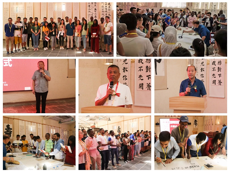 趙虎首先發(fā)表致辭。他表示,最近的敦煌喜事連連,習近平總書記前不久蒞臨敦煌莫高窟視察工作,對敦煌文化遺產(chǎn)的保護以及中國優(yōu)秀傳統(tǒng)文化的傳承作了重要指示。今天,留學生們來到月牙泉小鎮(zhèn)開展研學工作,恰恰是和敦煌文化的一種融合;鄭國斌先生在這里舉辦書法展,是對敦煌傳統(tǒng)書法的傳承與發(fā)揚。希望書法文化能夠在敦煌進一步發(fā)揚光大。
