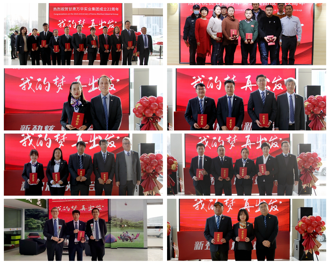 12月11日上午10時,甘肅萬華實業(yè)集團(tuán)舉行成立22周年紀(jì)念活動。萬華集團(tuán)總經(jīng)理牛新偉,副總經(jīng)理、董事會辦公室主任宿曉中,監(jiān)事會主席魏敏娟,副總經(jīng)理、開發(fā)部總經(jīng)理杜牧拉,財務(wù)管理中心財務(wù)總監(jiān)王鑫、副總監(jiān)牛英霓,甘肅萬華金慧科技股份有限公司總經(jīng)理施強(qiáng)、監(jiān)事會主席陳永華,甘肅萬華汽車銷售有限公司總經(jīng)理曹磊,甘肅金盛汽車銷售服務(wù)有限公司執(zhí)行董事盛斌,甘肅萬華職業(yè)培訓(xùn)學(xué)校校長、甘肅雙創(chuàng)互聯(lián)網(wǎng)科技有限公司常務(wù)副總經(jīng)理孫飛虎,以及下屬單位部分高管,蘭內(nèi)公司新晉老員工出席活動,共同見證這一重要時刻。