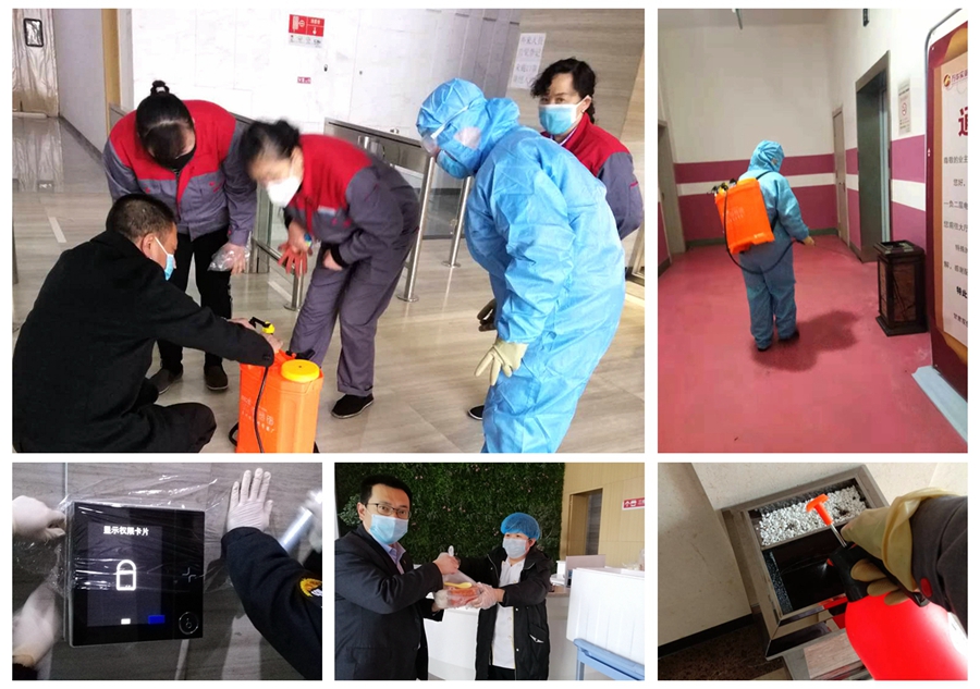 1月28日,防疫工作開(kāi)始有條不紊地展開(kāi):工程部關(guān)閉大廈空調(diào)系統(tǒng),關(guān)停二維碼訪客系統(tǒng)和大廈貨梯以及負(fù)一、負(fù)二層客梯,有效地管控了人員出入;綜合部聯(lián)系印制防疫宣傳展架,禁止未佩戴口罩人員進(jìn)入大廈,營(yíng)造了嚴(yán)肅的防疫氛圍;客服部安排保潔每日對(duì)大廈所有衛(wèi)生間、垃圾桶、電梯、門把手及各樓層公共區(qū)域按時(shí)按要求進(jìn)行消殺工作。