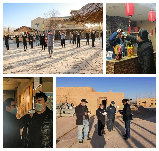 一手抓疫情防控,一手抓復(fù)工生產(chǎn)。千年敦煌·月牙泉小鎮(zhèn)民俗文化旅游景區(qū)自3月2日復(fù)工以來,認真落實景區(qū)辦公區(qū)域、公共區(qū)域、景區(qū)道路等區(qū)域的消殺工作。3月3日9時,敦煌千年古城文化發(fā)展有限公司派發(fā)了董事長牛新偉為一線員工準(zhǔn)備的N95口罩。疫情期間,為增強員工免疫力,每天清晨伴隨著舒緩的音樂,敦煌公司組織員工在景區(qū)中心街間隔1米,練習(xí)八段錦。
