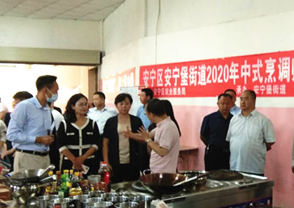 6月10日上午,安寧區(qū)政協(xié)主席黃曉玲,副區(qū)長黨梓文,區(qū)人社局副局長王鍇戈、袁明權,區(qū)就業(yè)局局長陳軍玲一行人來到 “安寧堡中式烹飪班”現(xiàn)場考察。甘肅萬華職業(yè)培訓學校校長孫飛虎陪同。