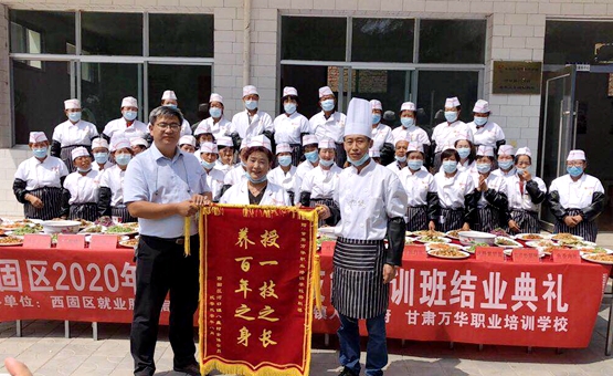 9月1日上午,由西固區(qū)就業(yè)服務(wù)局主辦,河口鎮(zhèn)政府及甘肅萬華職業(yè)培訓(xùn)學(xué)校承辦的西固區(qū)河口鎮(zhèn)中式烹飪班順利結(jié)課,西固區(qū)河口鎮(zhèn)勞保所所長張虎國、萬華職校招生運營主任郁萬才及全體培訓(xùn)老師、學(xué)員參加了結(jié)課儀式。儀式上,培訓(xùn)班全體學(xué)員為萬華職校贈送一面“授一技之長,養(yǎng)百年之身”的錦旗,以感謝學(xué)校優(yōu)質(zhì)的培訓(xùn)。