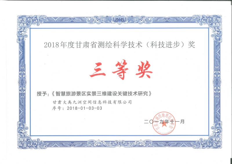 2018年度甘肅省測繪科學(xué)技術(shù)(科技進(jìn)步)獎(jiǎng)